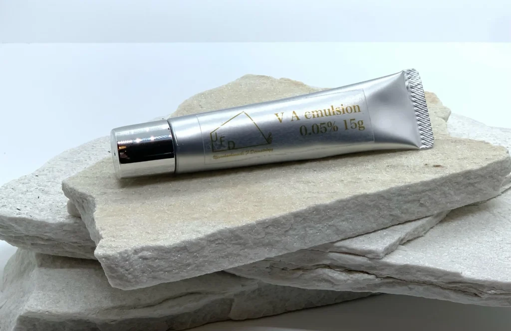 注意点としては、その効果が発揮される過程で、古い角質・細胞が押し出されるため、皮膚の赤み・かさつき・かゆみ・痛みが出ることがあります。その反応は通常1~2週間がピークで、その後は塗っているうちに徐々におさまり、1~2ヶ月でおおむね消えます。皮膚に反応が出ない場合でも治療効果に問題はございません。当院では、独自設計の薬剤を使用しておりナノカプセルで薬剤を包み込むことにより、薬物を少しずつ放出させることができようになり、その結果、従来の効果を損なわずに、トレチノインの反応(赤み・かさつき等)を低下させとても使用しやすいものを採用しております。