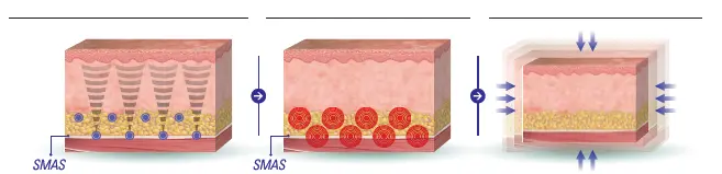 ウルトラセルQプラスは、医療用HIFU(ハイフ)の機械になります。 顔のたるみは、皮膚の土台となっているSMAS(スマス)層に ゆるみが生じたるみにつながります。 ウルトラセルQプラスはSMAS層に熱を加え引き締めてたるみが改善し、 リフトアップ効果が期待できます。
